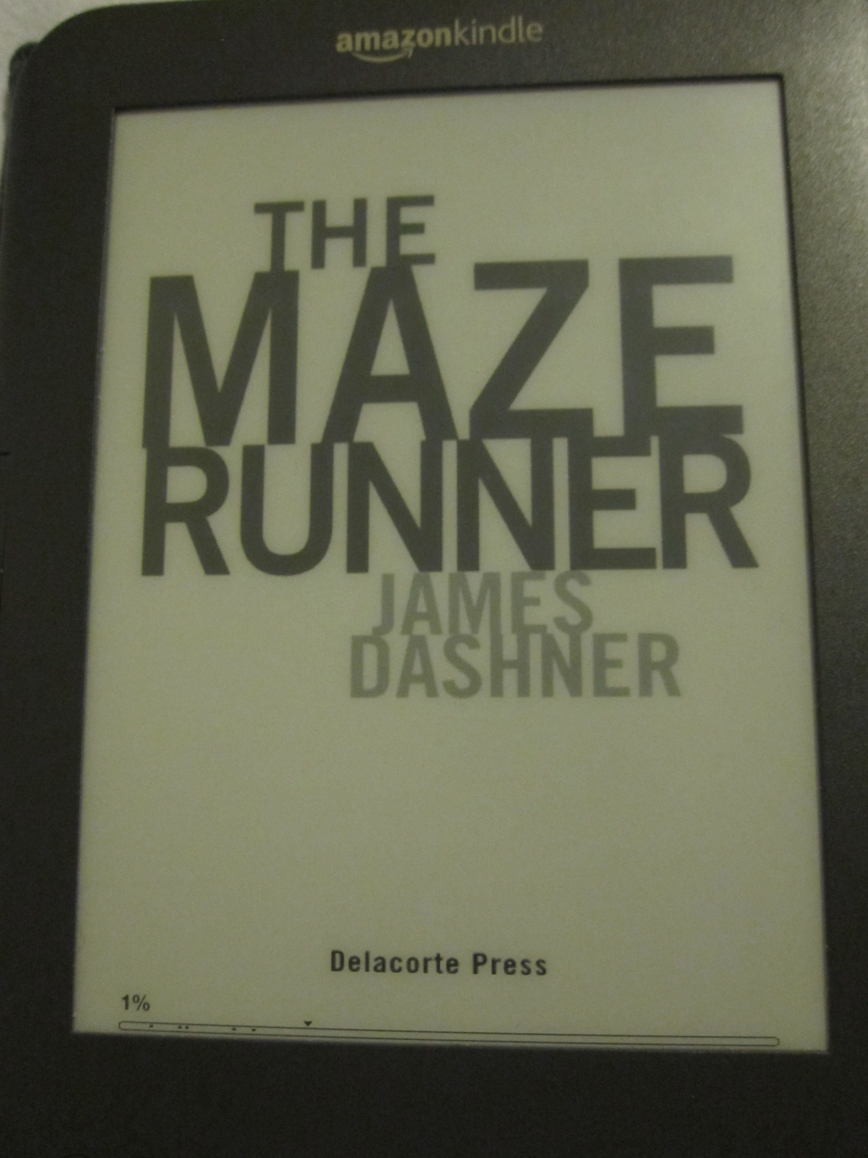 The Maze Runner by James Dashner, Borrowed from my library (I own a signed paperback, I just wanted to read it on my Kindle:) Can I also point out that Random House has BORING ebook covers?
