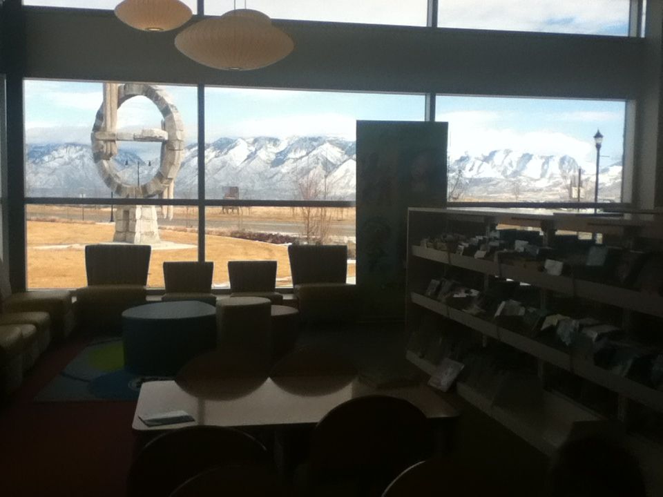 View of the mountains outside from the kids’ reading area. My kids will sit here for at least an hour reading with me.  I have to drag them out of the library to go home for dinner. :)