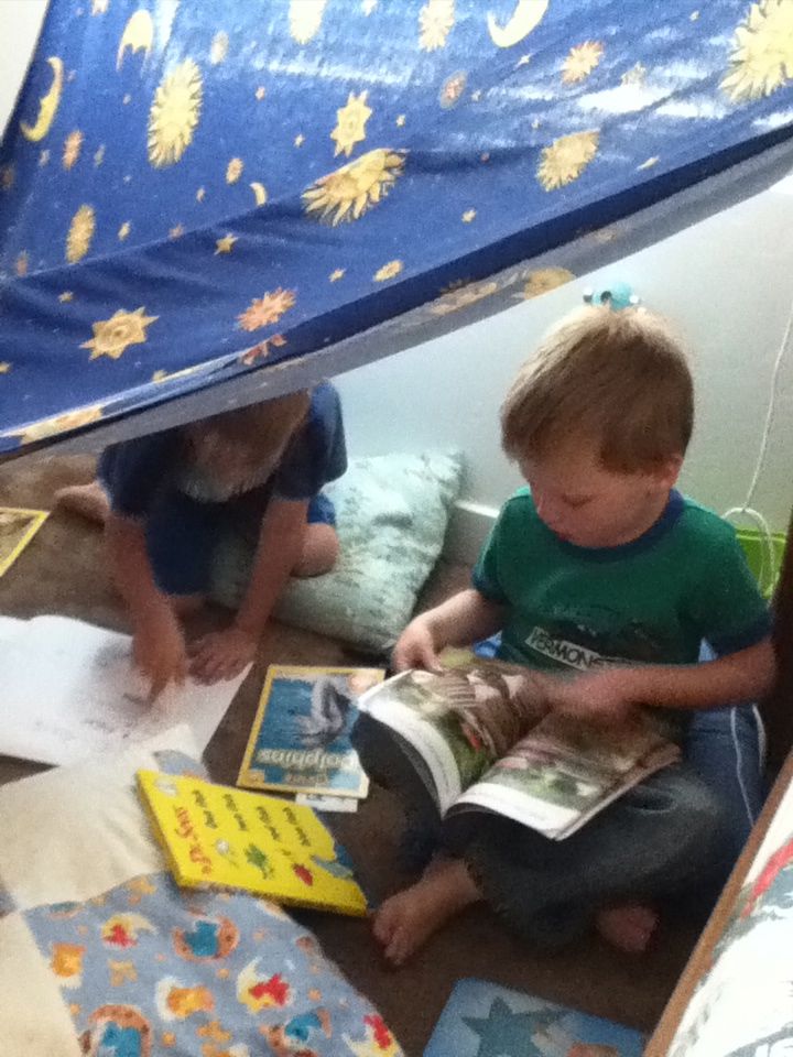 Then we built a fort in their room. They brought tons of books in there and I may or may not have fallen asleep. I really need my reading glasses back because I get a searing headache every time I read for longer than 30 minutes. And the headaches make me tired.