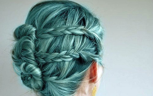 A girl with hair the improbably color of lapis lazuli.
