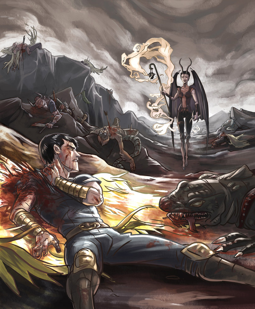 The quote above describes one of the last Kirin, which was a race of the chimera. This scene is actually from the first book but I love the portrayal of the Kirin race in this fan art.