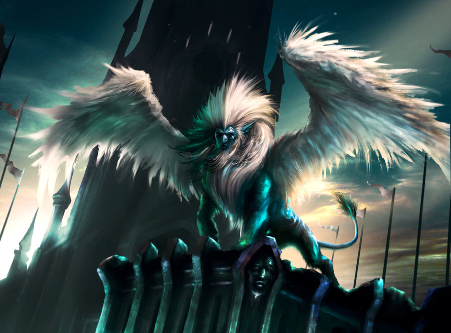 The sphinxes aren’t really described in much detail in the book, but since they are referred to as assassins (another name for them is “Shadows That Live”), I imagined them to look something like the picture above – dark and intimidating.